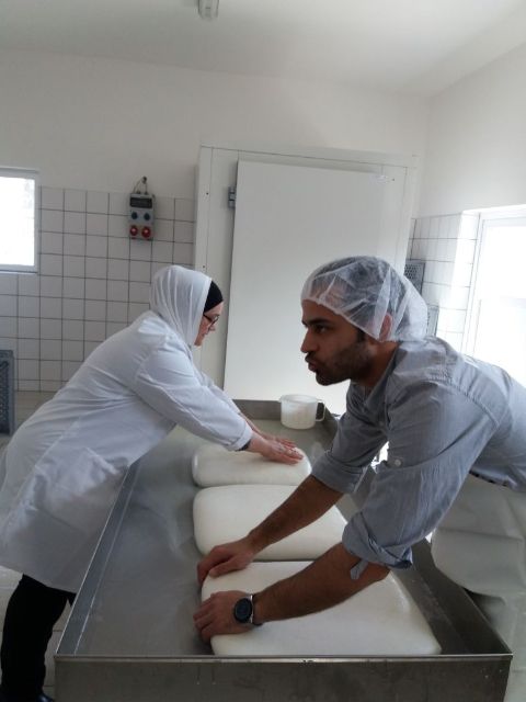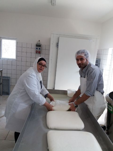 Unser Team in der Käserei besteht aus meinen Schwestern Doris Schiller und Karin Bruckmüller, sowie aus Samar Almasri und Emad Sadka (Mutter und Sohn der Familie Sadka).